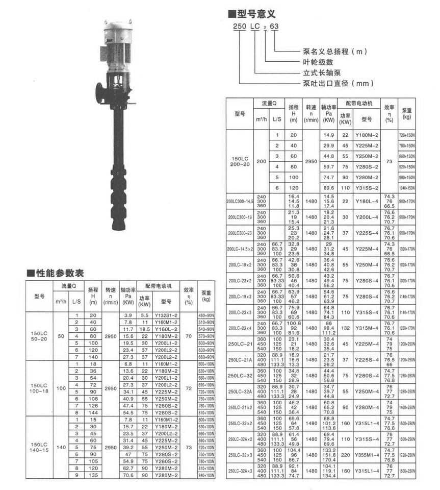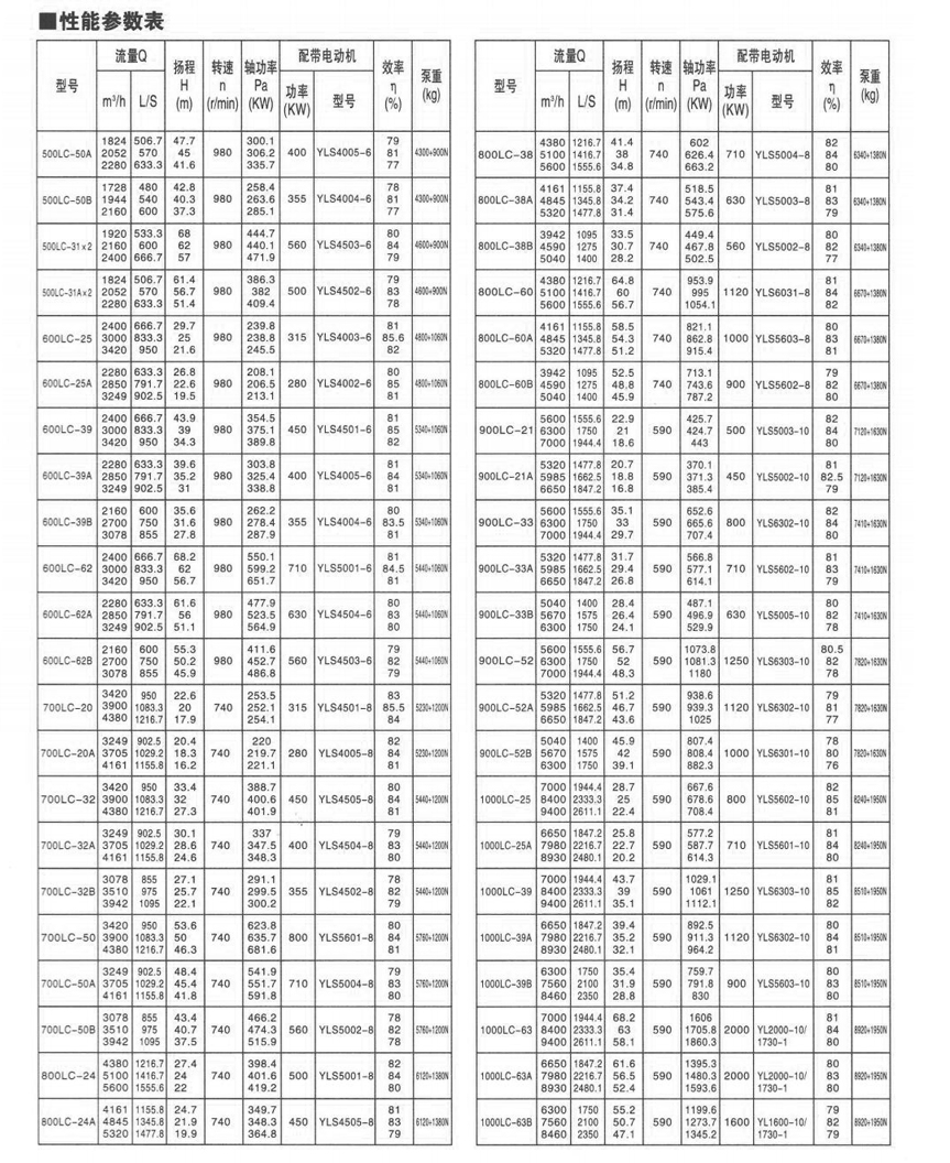 | LC型系列(liè)立式長軸泵,采(cǎi)用浸沒式葉輪(lún).立式安裝,具有(you)結構緊湊,工作(zuo)平穩,操作簡便(bian),通用化程度高(gāo)等🧑🏾🤝🧑🏼優點。 主要用(yong)途 •用于輸送清(qīng)水、污水、具有腐(fu)蝕性工業廢水(shui)或相似的液體(tǐ)🔅。 •工農業給水及(ji)城市工廠污水(shuǐ)的排放🌈。性能範(fàn)圍 •轉速:590r/min一2950r/min •出口(kou)直徑:100-1000mm •流量:30-9400m'/h •揚程(cheng):9.7-80.4m •功率:4-2000kw |
