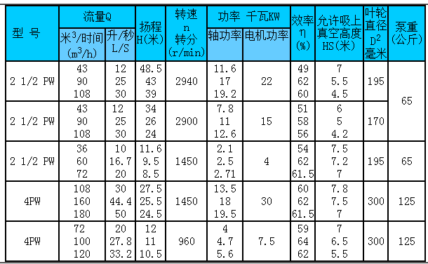 PW型污水(shuǐ)泵是卧式單級(ji)懸臂式離心泵(beng)。适于抽送80℃ 以下(xià)帶🙇♀️有纖維🍓或其(qí)它懸浮物的液(ye)體,供城市、工礦(kuang)企業排除污水(shuǐ)、 糞㊙️便之用。 21/2PW 21/2一泵(bèng)吐出口口徑為(wéi)2'/2寸,即65毫米P-雜質(zhì)泵 W-污水 2PNL 2-吐出口(kou)徑被25除所得值(zhi)P-雜質泵 N-泥漿 L-立(li)式 PW型污水泵是(shì)卧式單級懸🏃♀️臂(bì)式離心泵。适于(yu)抽送80℃ 以下帶有(you)纖維或其它🤟懸(xuán)浮物的液體,供(gong)城市、工礦企業(yè)排除污水、 糞便(biàn)之用。 21/2PW 21/2一🍓泵吐出(chū)口口徑為2'/2寸🈲,即(jí)65毫米 P-雜質泵 W-污(wu)水 2PNL 2-吐出㊙️口徑被(bèi)25除所得值P-雜質(zhì)泵 N-泥漿 L-立式